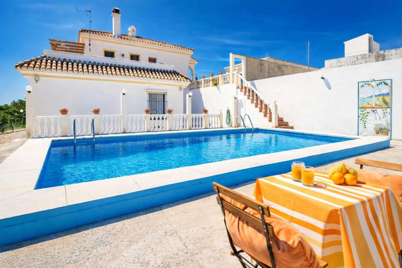 Four-Bedroom House. Guests will have a special experience as this holiday home provides a pool with a view. The spacious holiday home offers air conditioning, a washing machine, as well as a shared bathroom featuring a bath and a shower. Guests will find a refrigerator, a dishwasher, kitchenware and an oven in the fully equipped kitchen. The holiday home also has a barbecue. This holiday home features a private entrance, a tea and coffee maker, a flat-screen TV and a terrace. The unit offers 5 beds.