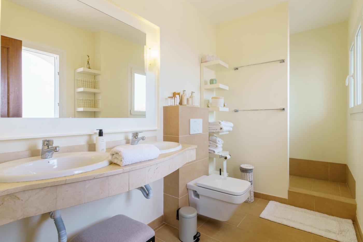Villa with Sea View. The private pool and fireplace are the standout features of this villa. Boasting a private entrance, this spacious villa also comes with 5 separate bedrooms and 4 bathrooms with a shower and a hairdryer. Guests will find a dishwasher, kitchenware, an oven and a microwave in the kitchen. The villa also includes a barbecue. The air-conditioned villa features a TV with streaming services, a washing machine, a coffee machine, a safe deposit box as well as sea views. The unit has 5 beds.