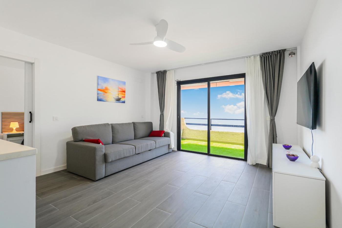One-Bedroom Apartment. This apartment consists of 1 living room, 1 separate bedroom and 1 bathroom with a shower and a hairdryer. Guests can make meals in the kitchen that is equipped with a stovetop, a refrigerator, a microwave and a tea and coffee maker. Featuring a balcony with sea views, this apartment also provides a washing machine and a flat-screen TV. The unit offers 2 beds.